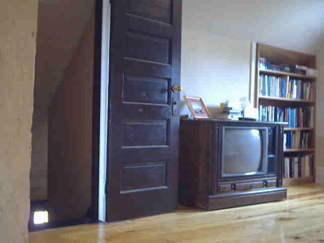 *Note: the bookshelves on both sides of the room are on casters and swing out